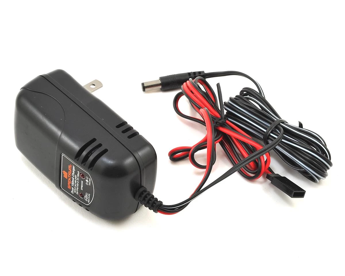 The Spektrum RC charger provides two charging ports. One port for your transmitter and one port for your NiMh or NiCd receiver battery. Input is AC 100 – 240V. Output is 150mAh to both the transmitter and Receiver.