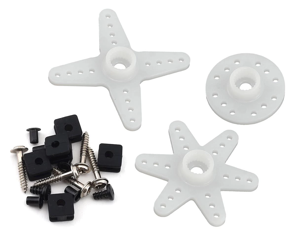 The Spektrum A6390 Standard Mid-Torque Mid-Speed Analog Servo is the perfect budget solution that offers a lightweight plastic gear train, a budget class leading torque rating of 66 oz/in and quick transit speed of 0.14/60. Single ball bearing output shaft and a robust composite plastic case offers durability you can depend on in your 60 size or smaller trainer and sport models. This part includes all the mounting hardware and three Heavy Duty plastic arms needed for your project.