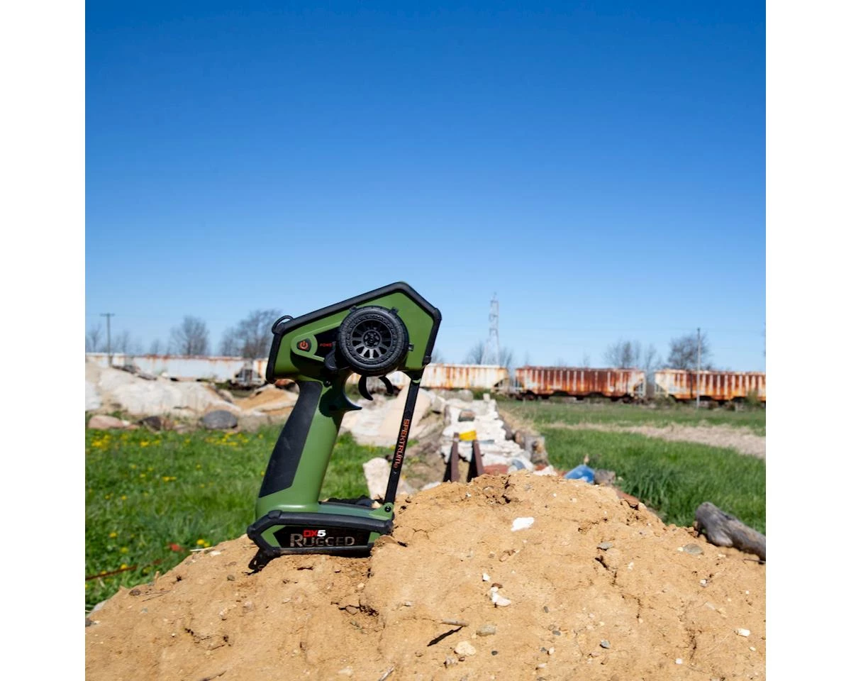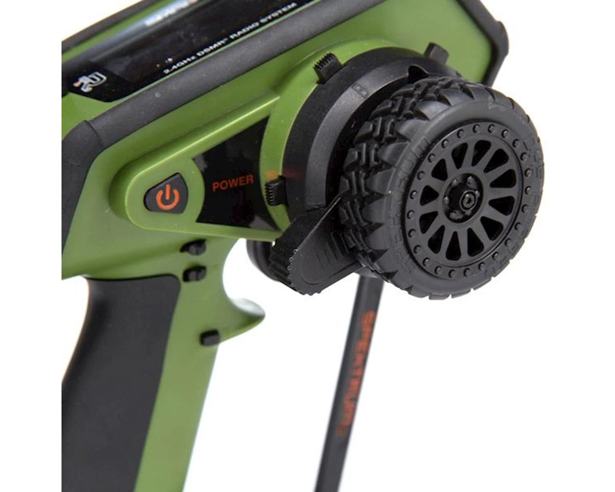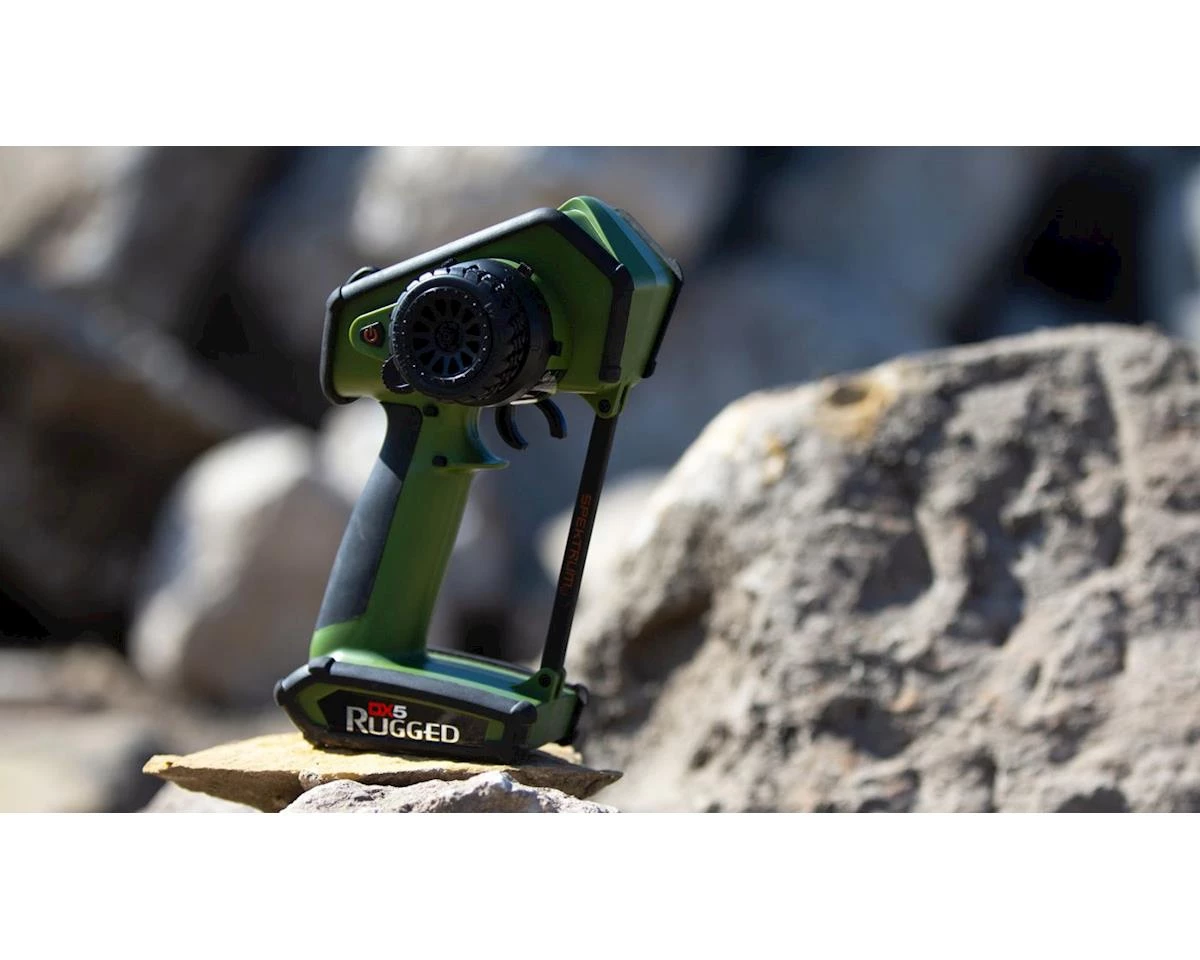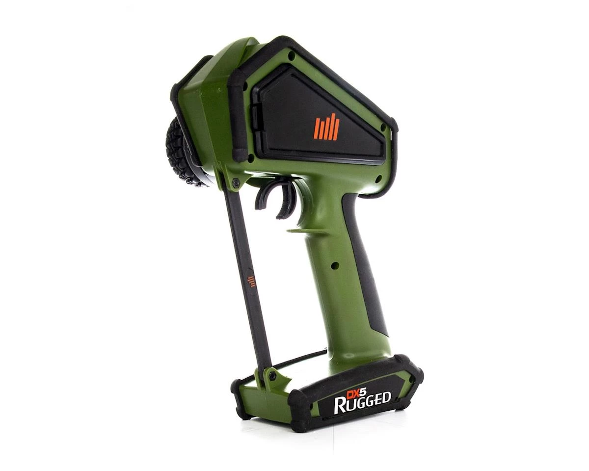 The Spektrum DX5 Rugged Green edition features an upgraded panel from the previous model, offering an improved feel, control, and system operation. The DX5 Rugged redefines transmitter control with a level of durability to match the tough conditions off-roaders, bashers and boaters encounter constantly. Starting with a chassis based on the superb Spektrum ergonomic design found on the popular DX5C and competition favorite DX5 Pro. By integrating cordless power tool protection features, the DX5 can endure similar punishment. The result is a class-leading RC system with unmatched durability in addition to other innovative features that unite with a level of precision, versatility and convenience you won’t want to play without.