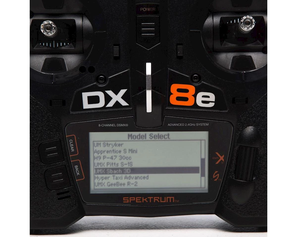 Your growing skills deserve a transmitter that can keep pace. The DX8e comes equipped with the programming you need, no matter what you fly. And because it’s based on the same Spektrum AirWare firmware used in most other Spektrum transmitters, you can share model setups with just about any Spektrum user you meet.