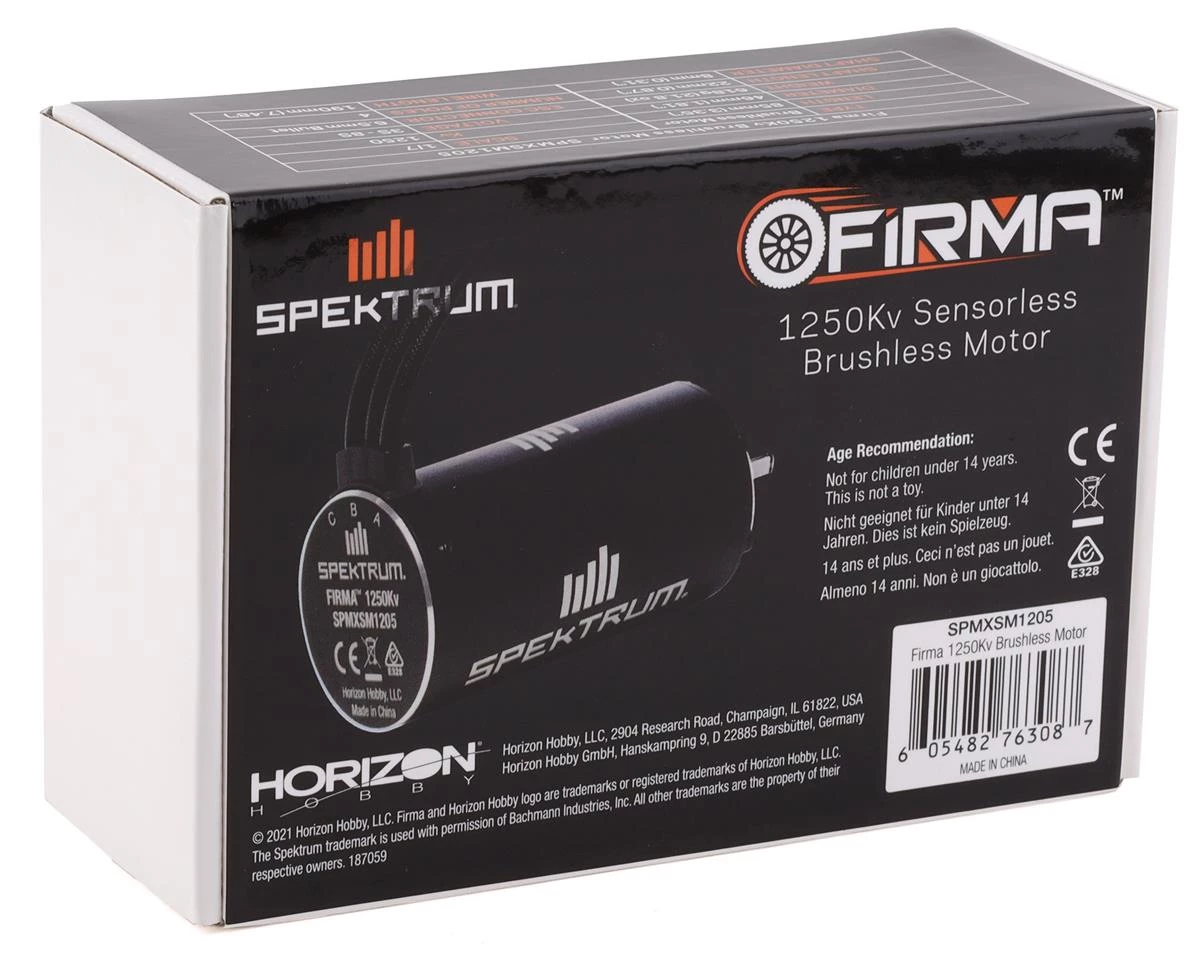 Spektrum RC Firma 4-pole Brushless Motor with 8mm Shaft. This optional motor is intended to be used with 1/7 scale RC surface applications. Package includes one brushless motor.