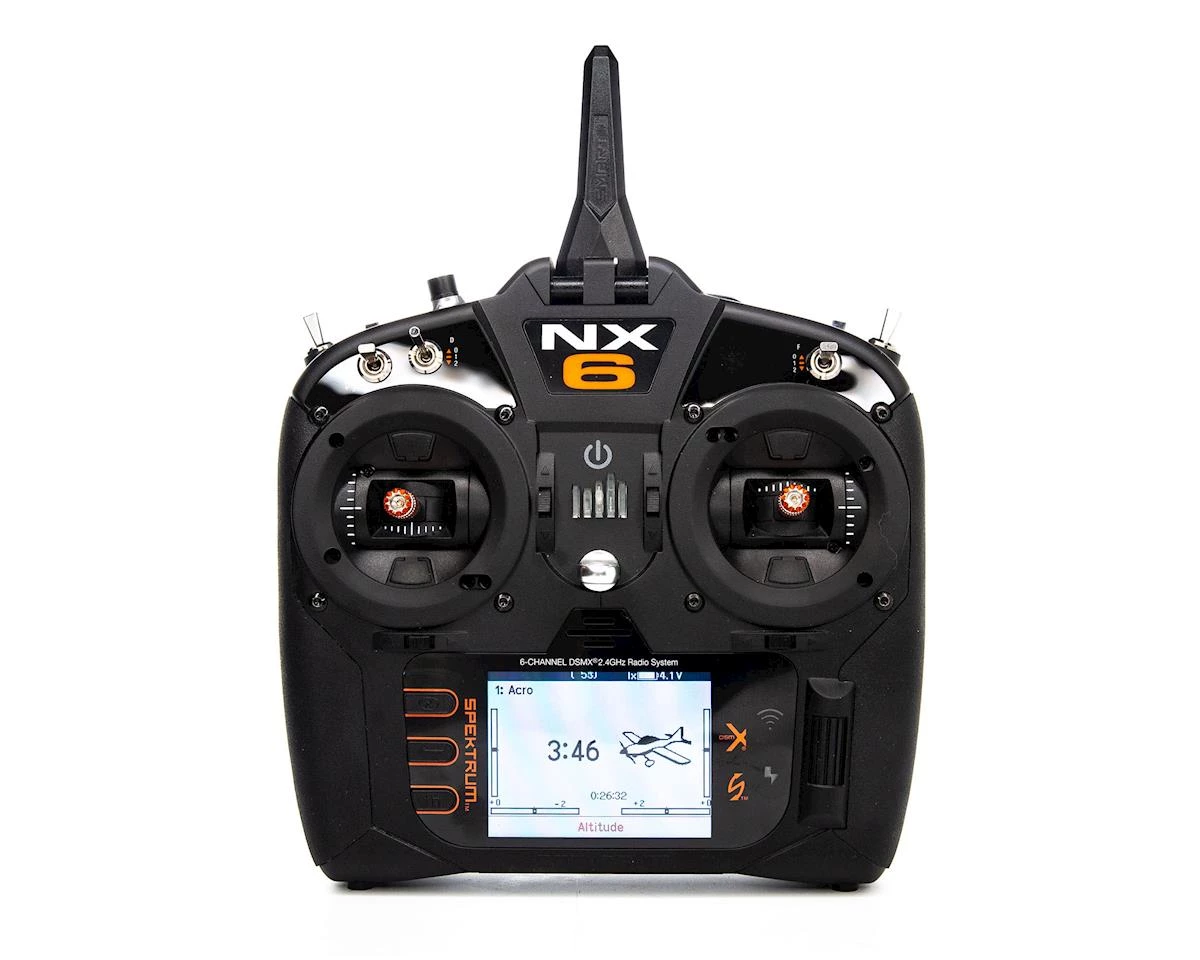 The Spektrum NX6 2.4GHz DSMX 6-Channel Radio System is an evolution in Spektrum air radios that builds the connectivity and telemetry advantages of Smart Technology into a 6-channel transmitter. It’s perfect for any pilot who wants easy programming plus advanced features.