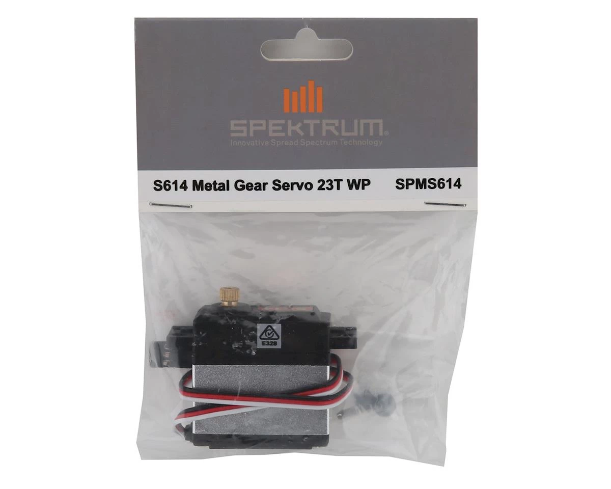 Spektrum S614 Waterproof Metal Gear Servo. This is the replacement servo included with the Axial Capra RTR (AXI03000T1, AXI03000T2), RR10 Bomber 2.0 RTR (AXI03016T1, AXI03016T2), SMT10 RTR (AXI03019) and Losi 8IGHT-T RTR (LOS04011). Package includes servo, servo horn, and hardware.