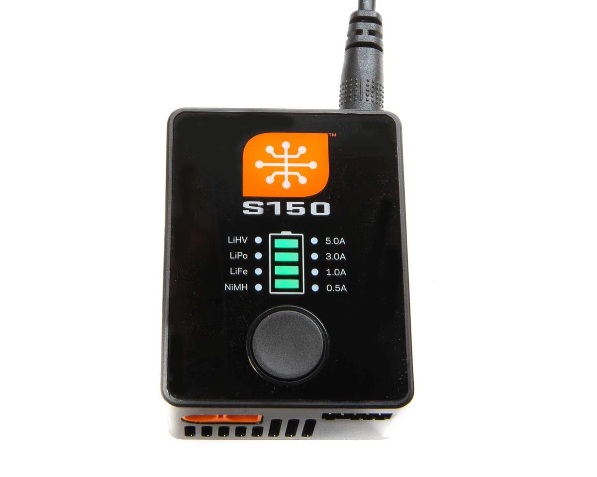 The Spektrum S150 AC Charger is a simple and fast charger, especially for those looking to utilize the Smart functionality found only in the Spektrum eco system. Spektrum Smart functionality includes auto charge, one connection balancing, and more!